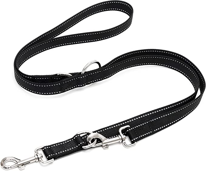 These are straps that have two carabiners, one at each end, and that have several hooks so that you can leave it at its full length, fold it in half, or adjust it at a midpoint, which in many cases will allow you to carry it in shoulder strap mode so that it will leave your hands free (something that is only recommended if you have a dog that knows how to walk correctly, without giving sudden jerks, since otherwise, it could end up throwing you).