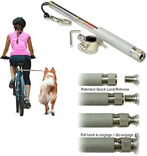 The system in question consists of a straight metal tube that is attached to the seat post and includes three springs inside that absorb any sudden jerk that the dog may give, and a rope that is attached to its harness. This makes it very safe, both for you and your four-legged friend since it will keep them at an adequate distance from the bike and prevent them from causing you to fall if they give an unexpected jerk.